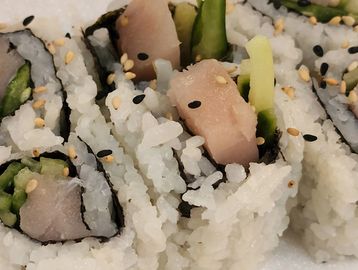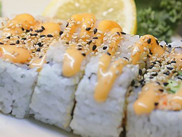 Cucumber, avo, inari topped withspicy mayo and sesame seeds