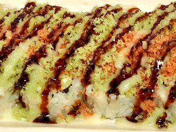[Cucumber, Crabmeat, Shrimp tempura] Avo, Deep fried Unagi, Masago, Wasabi Mayo, Brown sauce, Green Onion, Sesame seeds